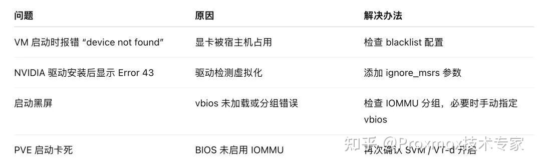 以下是PVE虚拟机显卡直通的常见问题和解决办法,供参考。